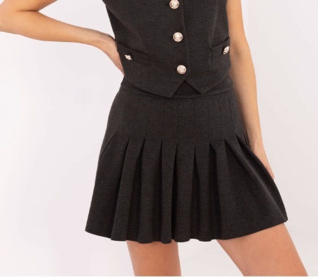 Ciemnoszara plisowana spódnica to ponadczasowy element garderoby, który doskonale łączy w sobie klasę i wygodę. Jej plisowany krój pięknie układa się na sylwetce, a neutralny, elegancki kolor sprawia, że z łatwością dopasujesz ją do różnych stylizacji — zarówno tych formalnych, jak i codziennych.